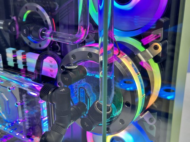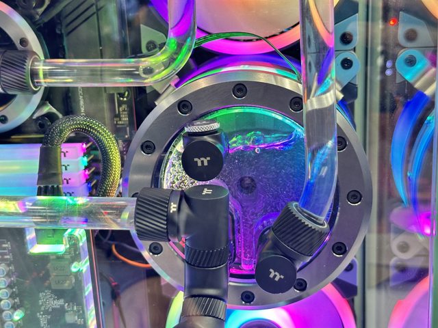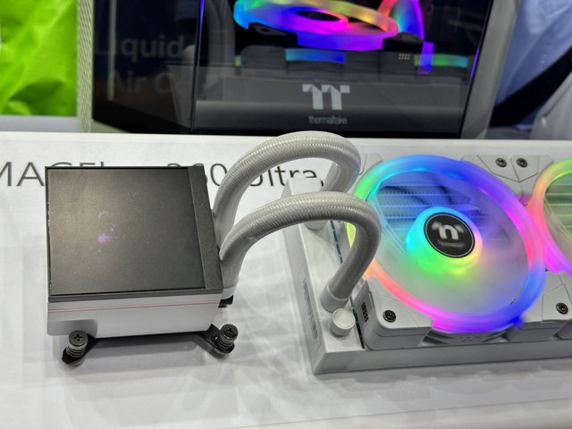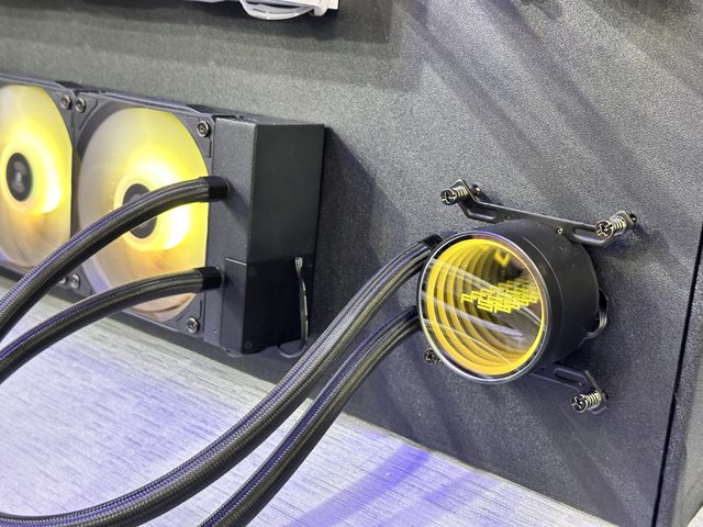 因為展場人員都在忙所以沒多詢問,但冷排連接水冷處加厚的部分個人猜測是水泵。