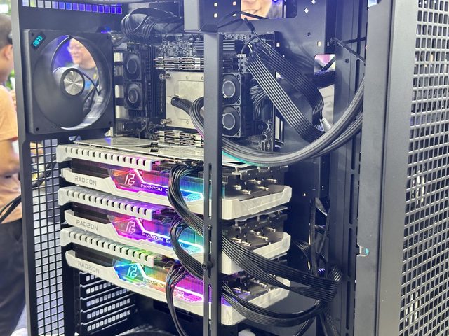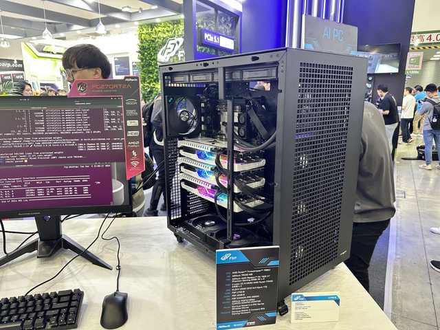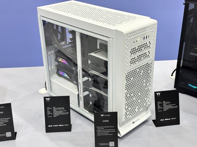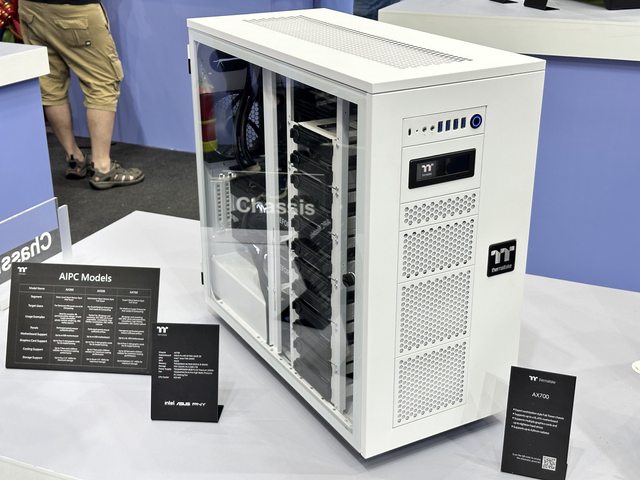 再旁邊展示對多顯示卡AI電腦打造的機櫃型機殼U700,內部搭載7980X CPU及3張7900XT顯