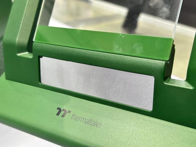 TT的三面玻璃海景機殼CTE E550 TG,前方、左側及後方皆為玻璃面板,現場看到有黑色