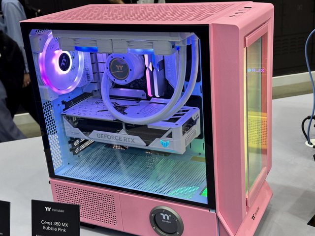 粉紅色款,TT機殼特色之一就是有很多配色,但玻璃側板用黑色邊框是...?