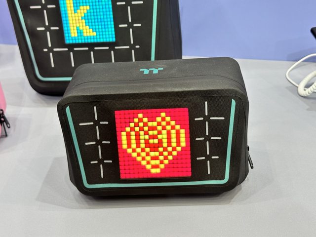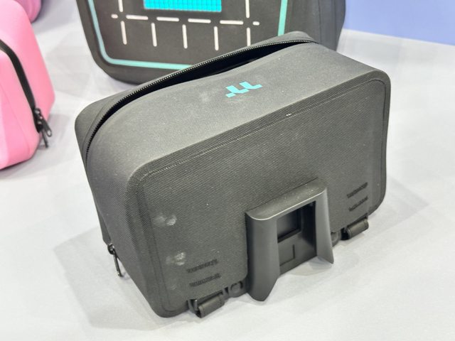 今年現場沒有展示腳踏車了,但還是有腳踏車配件,例如這款帶點陣螢幕的包包,個人對