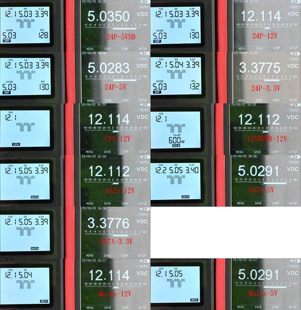 12+4P功率等級,再按一下開關會切換至SATA頁面並顯示SATA的+12V/+5V/+3.3V電壓(中下