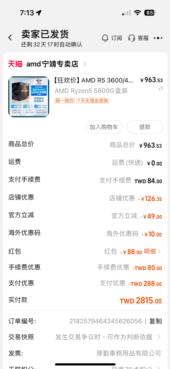 推 arnold3: 我買cpu 好像扣300元關稅 119.14.100.51 06/14 19:01