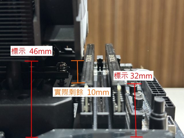 為46mm高,十銓的Creator記憶體標示高度為32mm,推測記憶體插槽再佔去其中4mm高度,