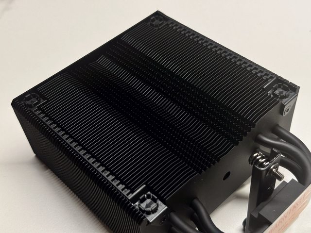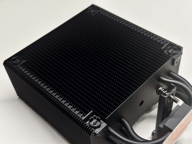 接著是散熱器本體,黑色版的鰭片帶有塗層,不曉得是用什麼工藝連接鰭片,外觀沒看到