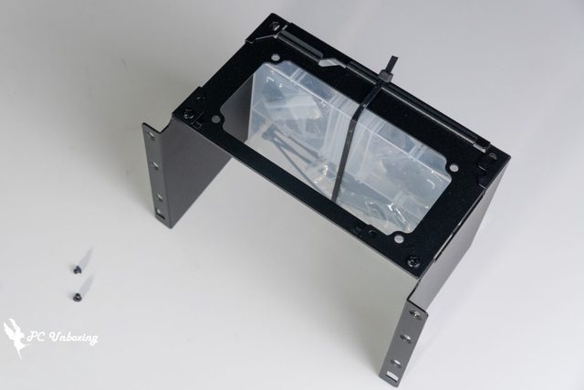 LIAN LI A3-mATX 出廠時是將電源供應器安裝支架設置於前面板處,可以看到旁邊由兩個螺