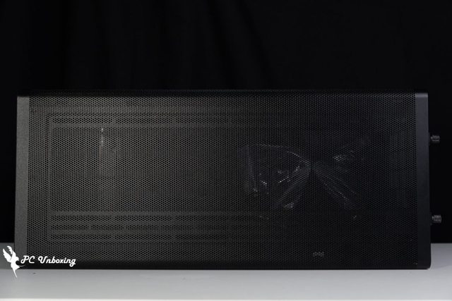 主機板背面側板也是全面積網孔側板,比較直觀的用途就是當電源供應器安裝在側面時,電