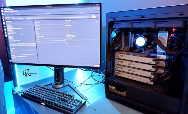 AI TOP區展示TRX50 AI TOP主機板採用4張RTX 4070Ti SUPER AI TOP 16G,搭配左邊AI