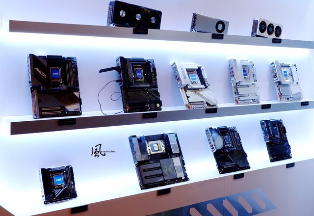 以Intel與AMD系列所組成的主機板牆,下方三款是下一代的新品。