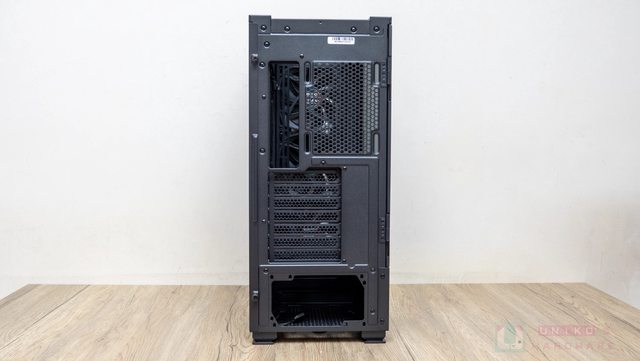 右面側板上有小範圍網孔,對應是側邊的 120 mm*2 風扇位置,讓側邊風扇能妥善發揮效果