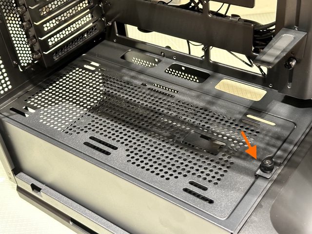 硬碟安裝位置設於電源側邊的好處是電源線可伸縮及擺放的空間十分充足。