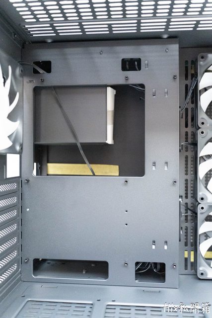 上面可安裝360水冷,下方可再加一組3入的反向扇