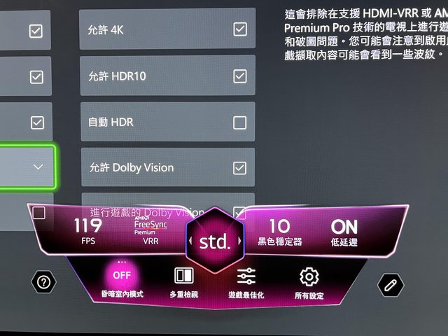 受惠於HDMI 2.1完整頻寬,最大解析度4K/120Hz/12bit/HDR訊號