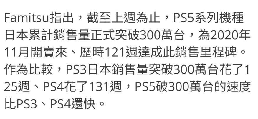 → shinchen: 計326台賣69萬份 PS5現在日本累計只看光碟版也461萬了 03/08 11:26