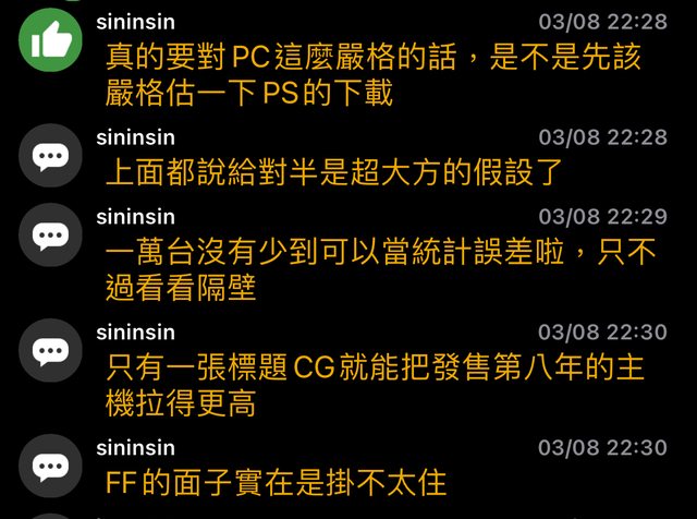 → cocowing: FF16不是常賣型的,FF15後續也有持續賣破千萬,我是看 03/09 17:03