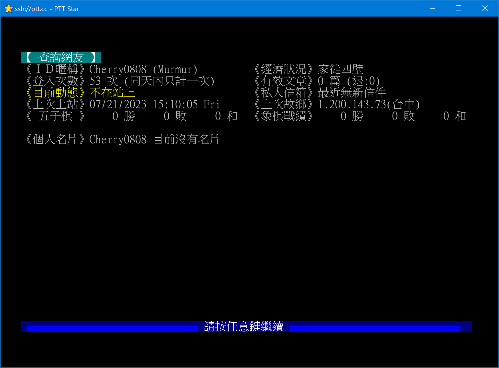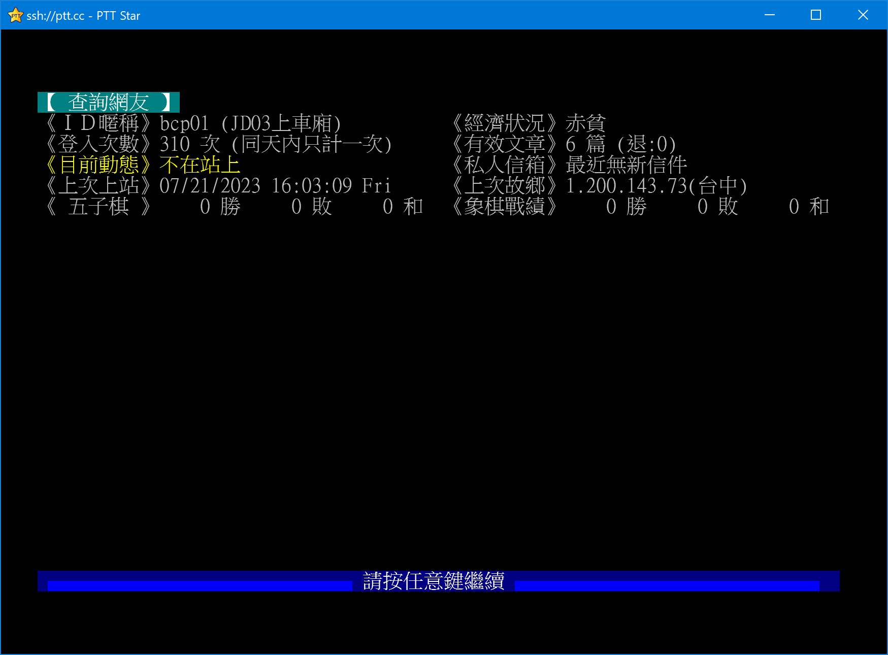 《目前動態》不在站上 《私人信箱》最近無新信件