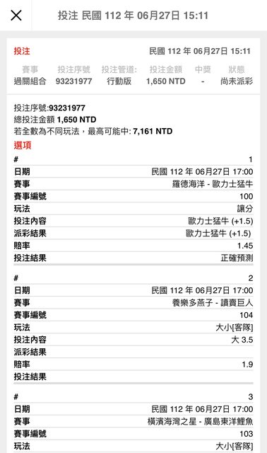 ※ 文章網址: https://ptt.org.tw/SportLottery/M.1687959625.A.081
