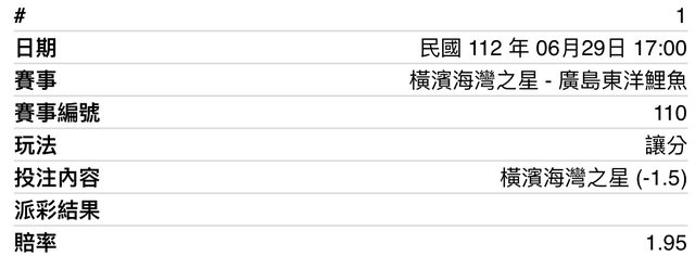 ※ 文章網址: https://ptt.org.tw/SportLottery/M.1688022418.A.67E