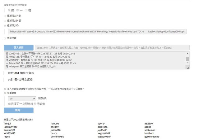 以上為推文中獎
