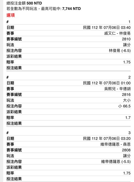 ※ 文章網址: https://ptt.org.tw/SportLottery/M.1688563126.A.447