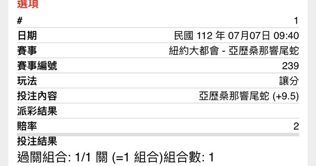 ※ 文章網址: https://ptt.org.tw/SportLottery/M.1688735374.A.E5D