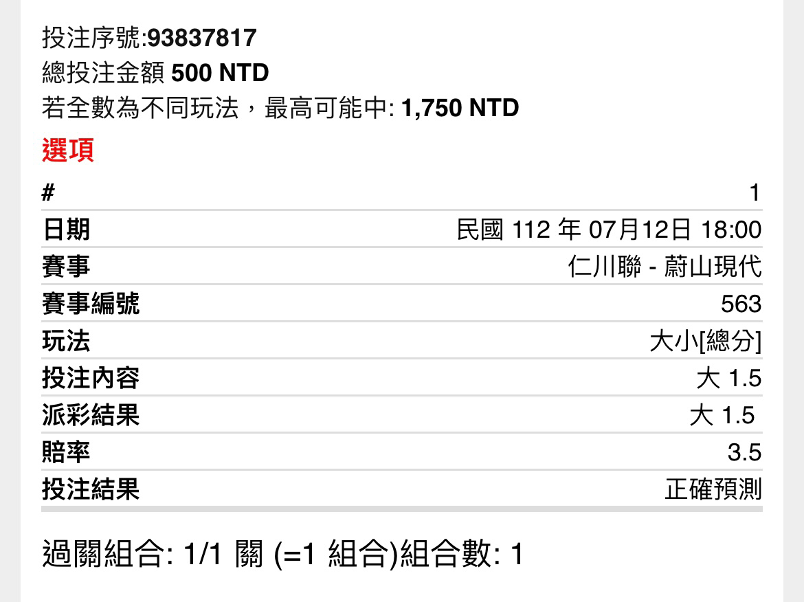 推 nnn820328: 還好半場有補1.5大跟2.5大 舒服 49.217.8.103 07/12 19:53