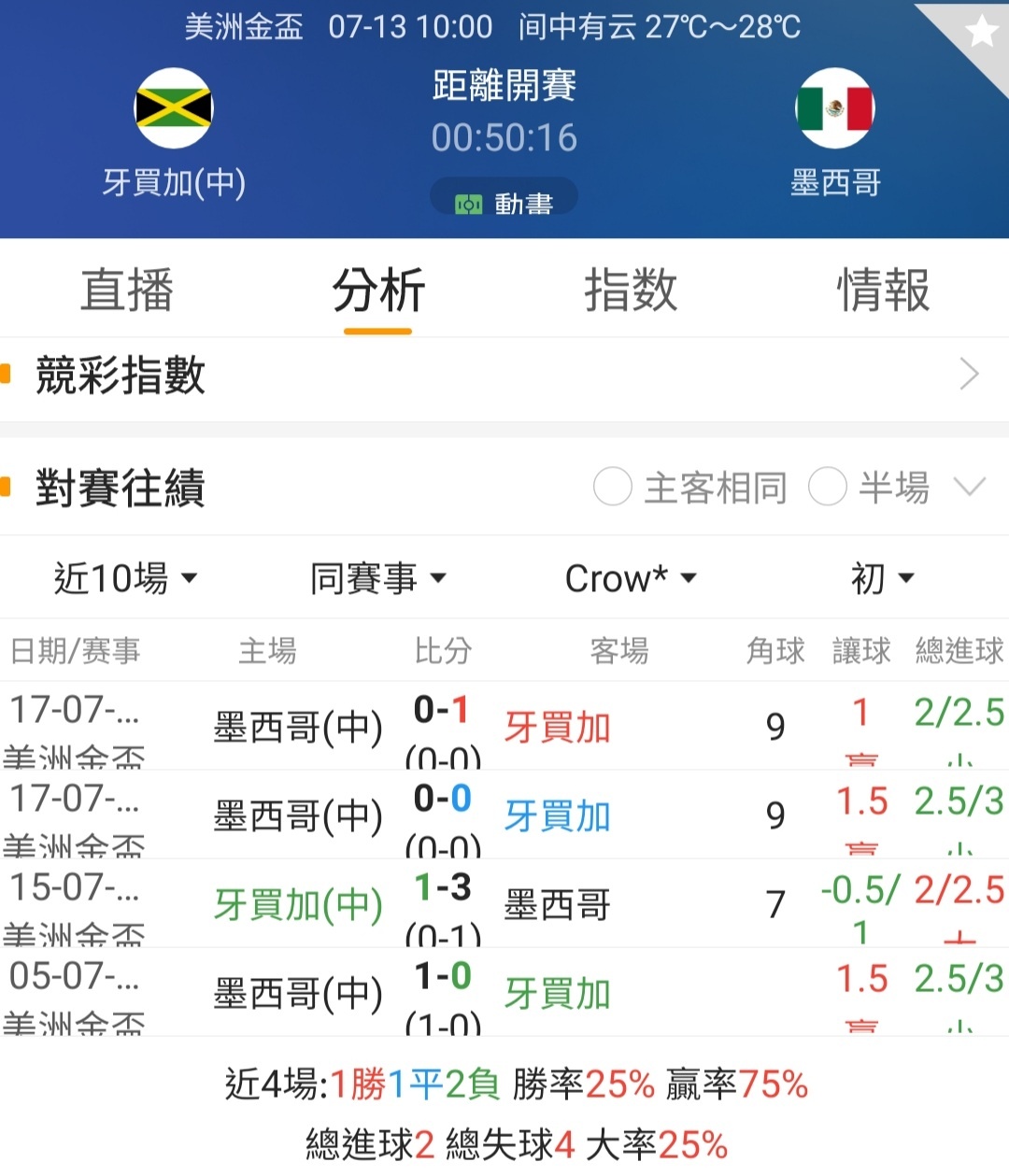 牙買加vs墨西哥 = 1:3 這場還是2015決賽
