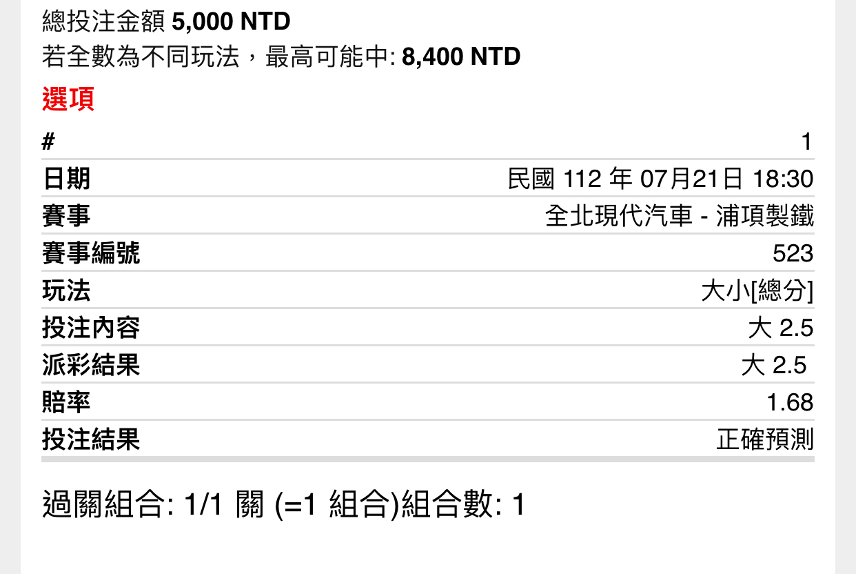 → kirk0110: 萬一上半蛋,中場1.5大過的機率也很高 61.224.70.196 07/21 18:22
