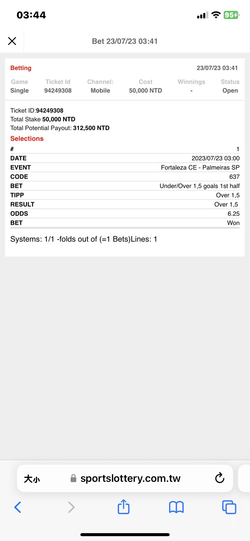 推 godsong: 阿超2.5大3.1倍 不到15分下盤就進球.....61.62.128.144 07/23 02:53