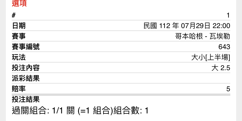 推 punchme90: 上半沒尾球 直接拿贏的捏3.5小了 123.192.92.45 07/29 22:53