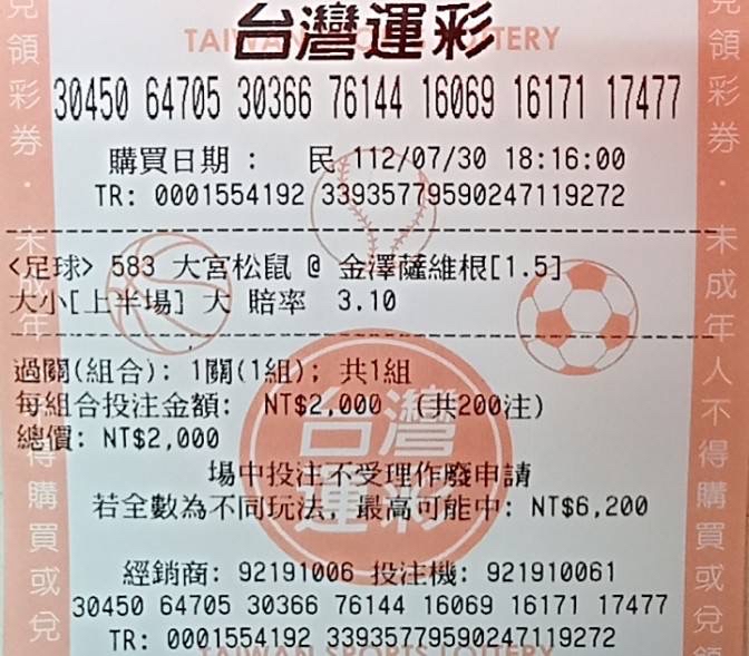 推 Peteribb: 尾球2.85太低了只買一張,唉可惜 27.52.30.57 07/30 19:54