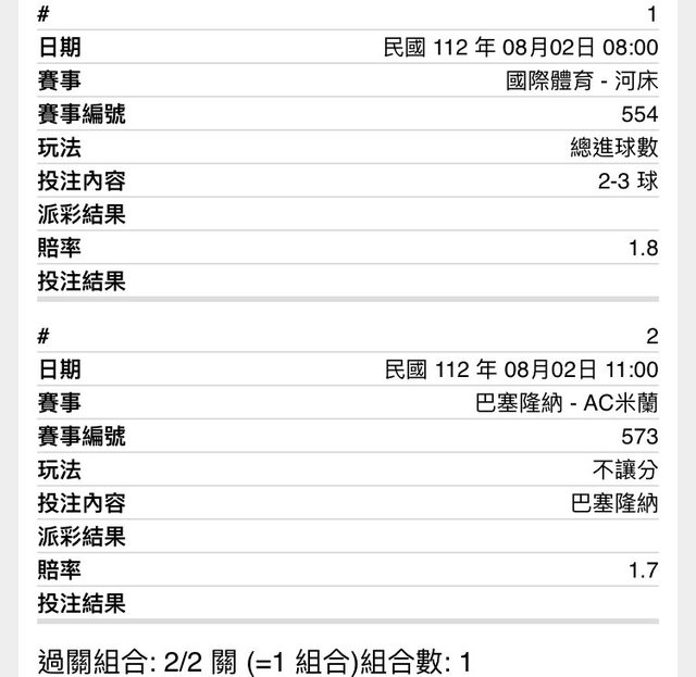 ※ 文章網址: https://ptt.org.tw/SportLottery/M.1690894972.A.E6B