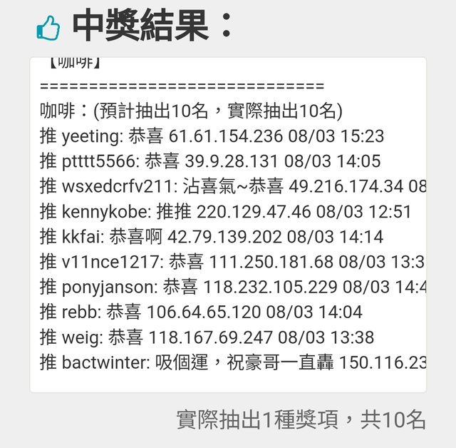 : 分享一下喜悅 咖啡一起抽 抽個10杯咖啡