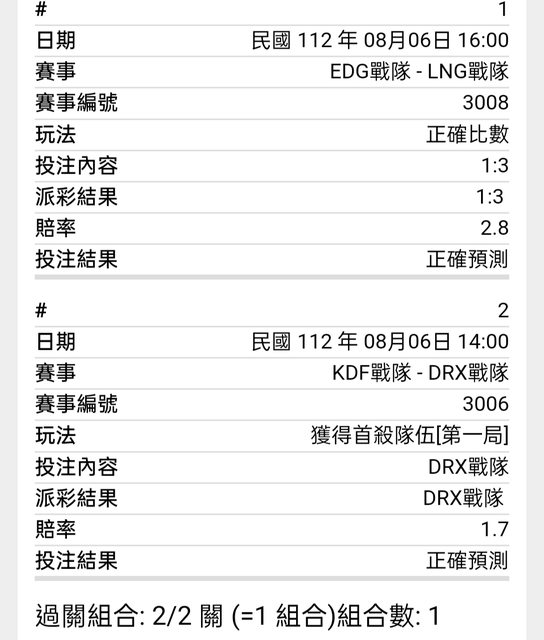 ※ 文章網址: https://ptt.org.tw/SportLottery/M.1691327206.A.A54