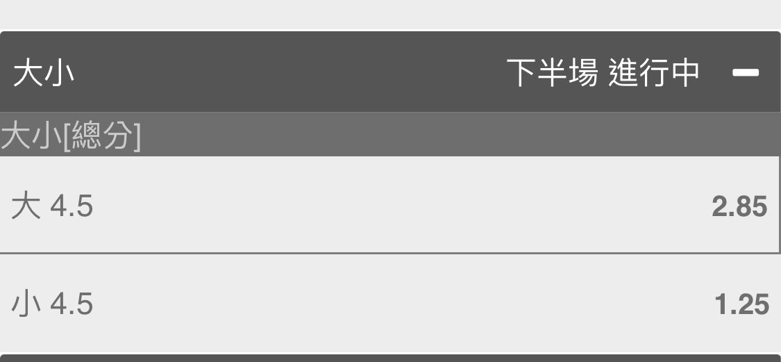 → all035: 3球的時候 沒3.5 大 4球的時候沒有4.5大 106.64.176.24 08/08 08:54