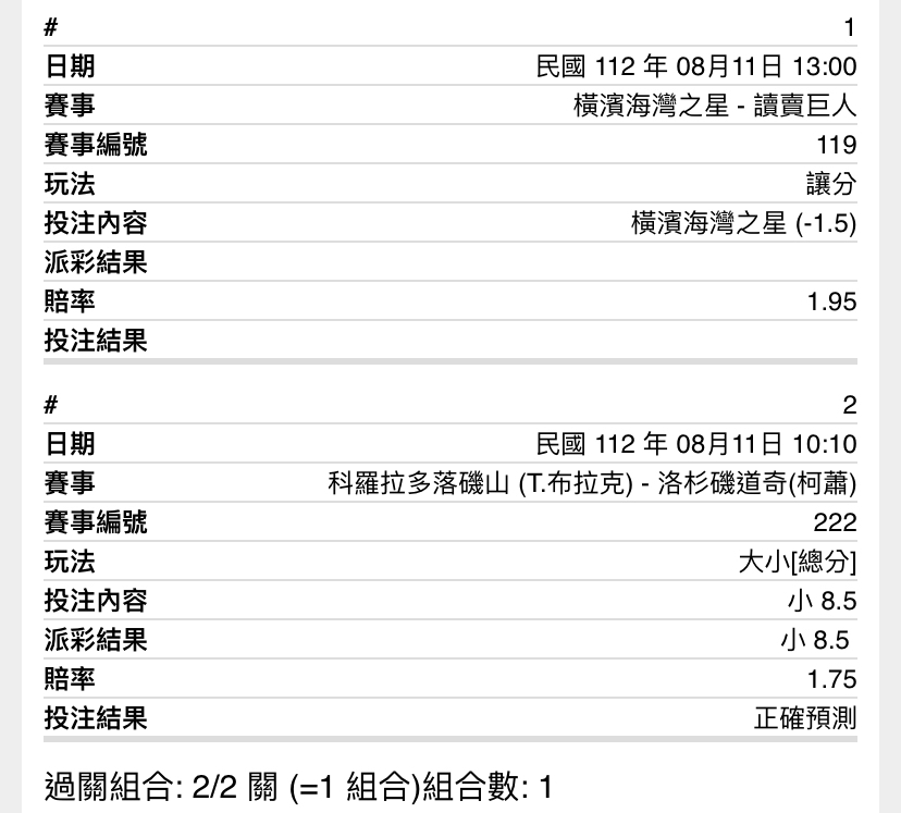 → w2658741: 1.場的海星-1.5串道奇8.5小 聽牌 111.83.8.166 08/11 13:14