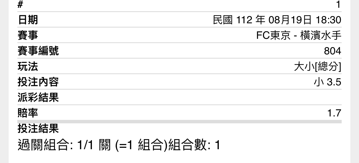 推 SimleToMe: 0球 1.5 2.5小全餐114.136.94.53 08/19 18:27
