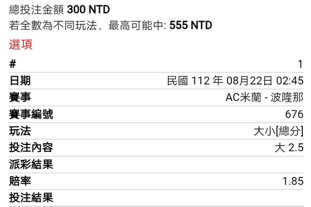 ※ 文章網址: https://ptt.org.tw/SportLottery/M.1692634597.A.ECD