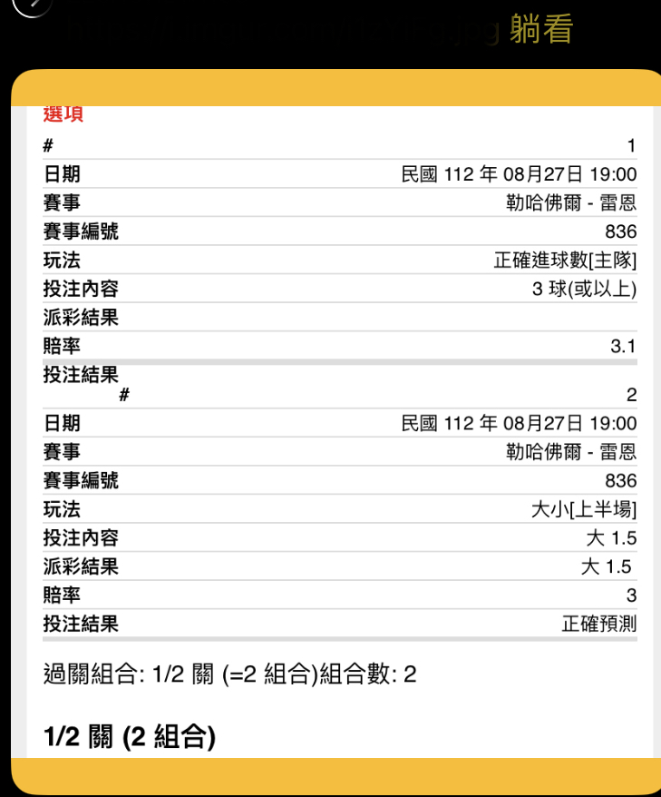 → tender573: 等等下一場的場中英超也是2.5大跟3.5大27.52.161.191 08/27 19:12