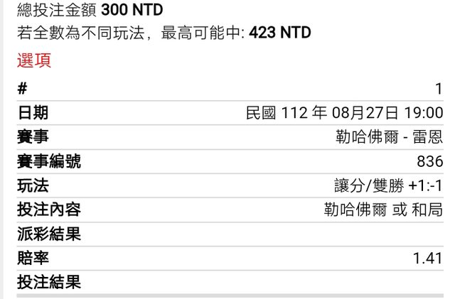 ※ 文章網址: https://ptt.org.tw/SportLottery/M.1693132562.A.DAE