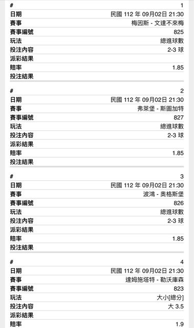 ※ 文章網址: https://ptt.org.tw/SportLottery/M.1693661542.A.8CF