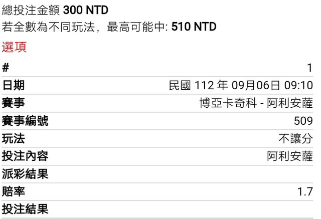 ※ 文章網址: https://ptt.org.tw/SportLottery/M.1693959396.A.BB3