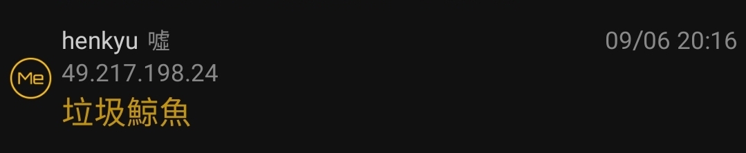 → henkyu: 對不起鯨魚爸爸 我才是垃圾 你是我親爸爸 49.217.198.24 09/06 20:27