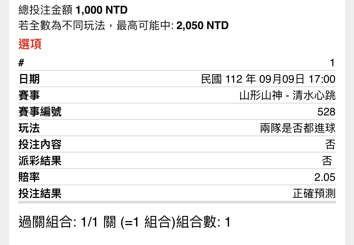推 don999: 上3看到6倍就進球了 118.233.131.60 09/09 17:34