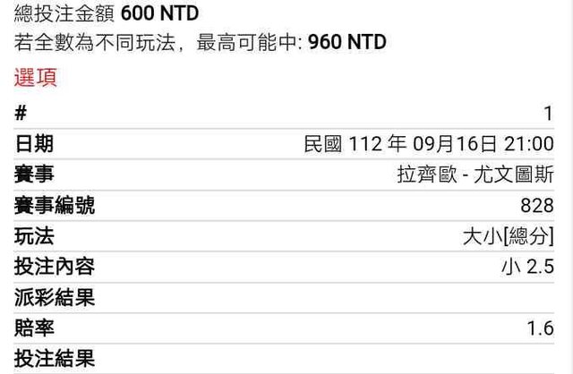 ※ 文章網址: https://ptt.org.tw/SportLottery/M.1694866527.A.A18