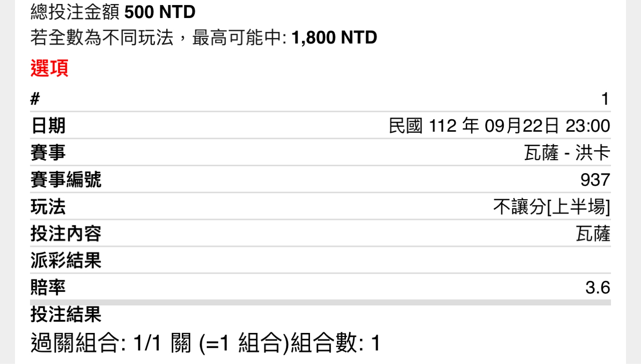 -- ※ 發信站: 批踢踢實業坊(ptt.org.tw), 來自: 1.200.76.23 (臺灣) ※ 文章網址: https://ptt.org.tw/SportLottery/M.1695393090.A.370