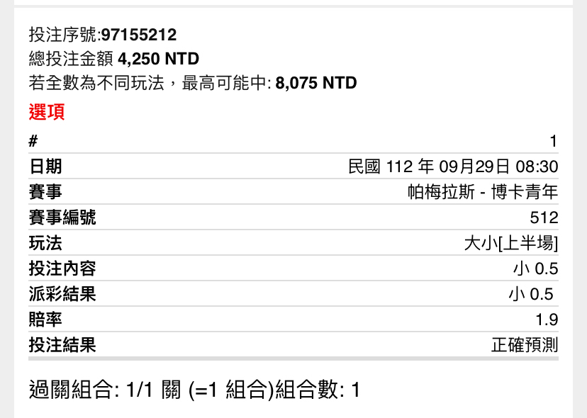 -- ※ 發信站: 批踢踢實業坊(ptt.org.tw), 來自: 1.200.75.30 (臺灣) ※ 文章網址: https://ptt.org.tw/SportLottery/M.1695945911.A.5C9