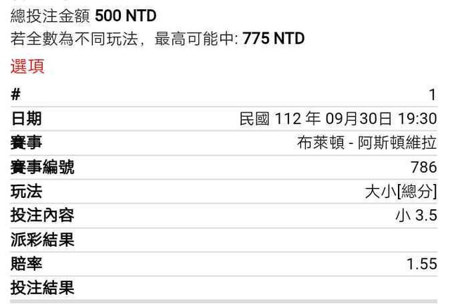 ※ 文章網址: https://ptt.org.tw/SportLottery/M.1696068801.A.99F
