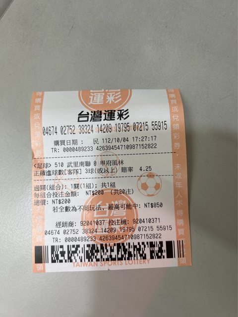 ※ 文章網址: https://ptt.org.tw/SportLottery/M.1696411926.A.9D9