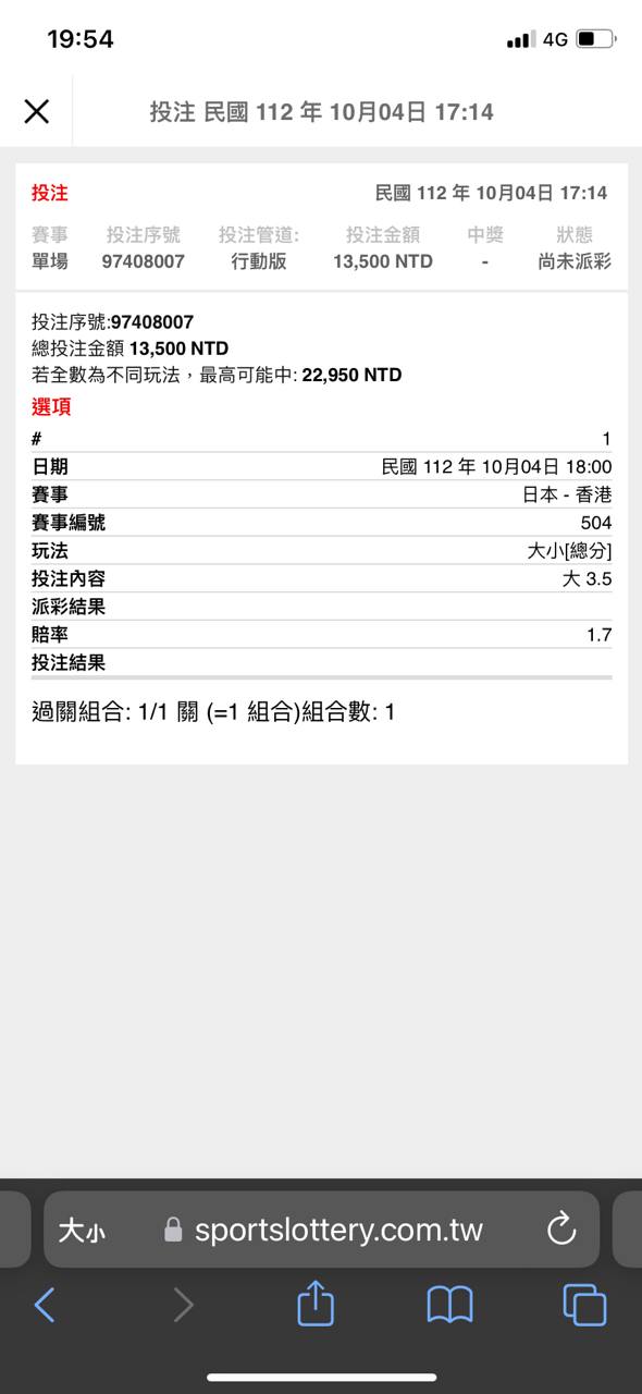 推 freak6910: 開心,賽前買到大3.5是1.8220.143.222.198 10/04 19:54